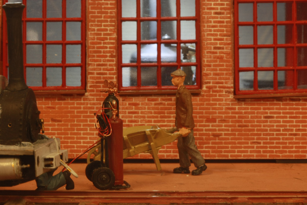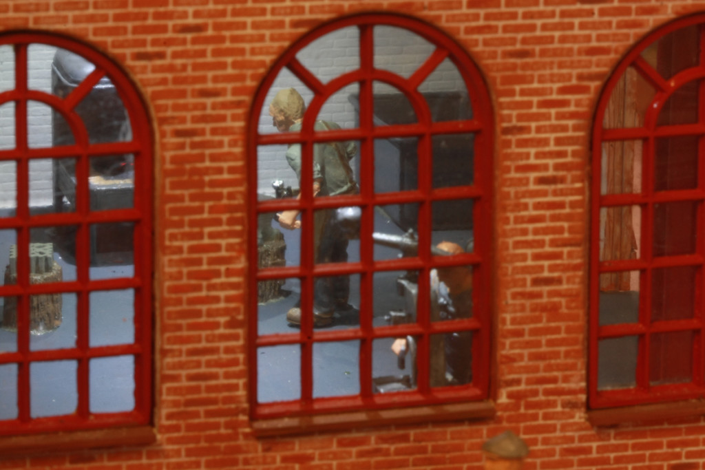A large collection of industrial buildings has been needed for the project, as will be seen in the accompanying pictures. All the buildings have been made using Slaters Plastikard, have modelled interiors, are lit and are populated by S and D figures and accessories.