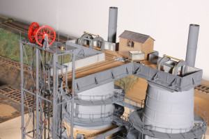 “Brymbo” is a 7mm/foot combined standard and narrow gauge industrial layout based on the Brymbo ironstone works near Hook Norton in Oxfordshire, which existed from 1900 until 1946. The works consisted of a network of 2 foot gauge lines feeding ironstone to the calcining kilns from the nearby quarries, and had standard gauge lines to take the calcined stone away to the parent company in Wrexham, Wales.